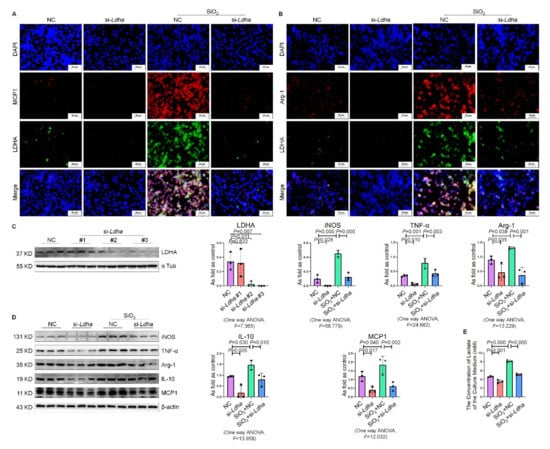 2.6. Knockdown of Ldha Inhibited Silica-Induced Macrophage Activation