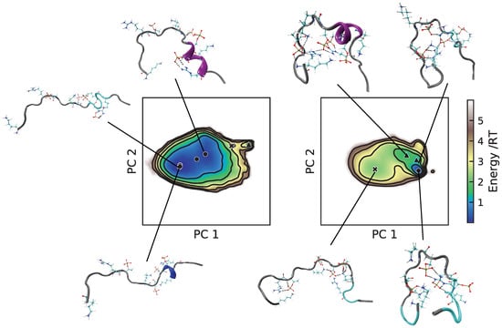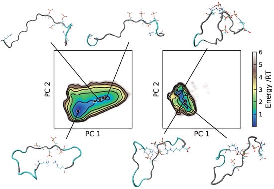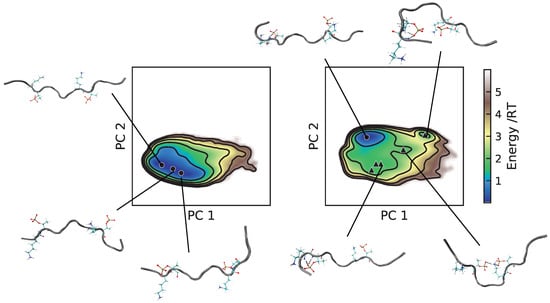 - Campos, S.R.R.; Baptista, A.M. Conformational Analysis in a Multidimensional Energy Landscape: Study of an Arginylglutamate Repeat. J. Phys. Chem. B 2009, 113, 15989–16001. [Google Scholar] [CrossRef]