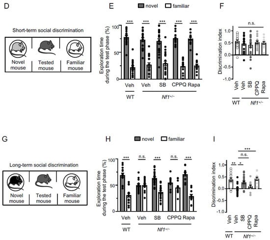 2.2. Effect of Blocking the 5-HT6 Receptor-mTOR Pathway on Sociability and Short-Term and Long-Term Social Memories of Nf1+/− Mice
