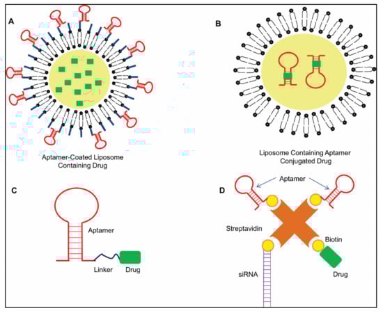- McNamara, J.O., II; Andrechek, E.R.; Wang, Y.; Viles, K.D.; Rempel, R.E.; Gilboa, E.; Sullenger, B.A.; Giangrande, P.H. Cell type-specific delivery of siRNAs with aptamer-siRNA chimeras. Nat. Biotechnol. 2006, 24, 1005–1015. [Google Scholar] [CrossRef]