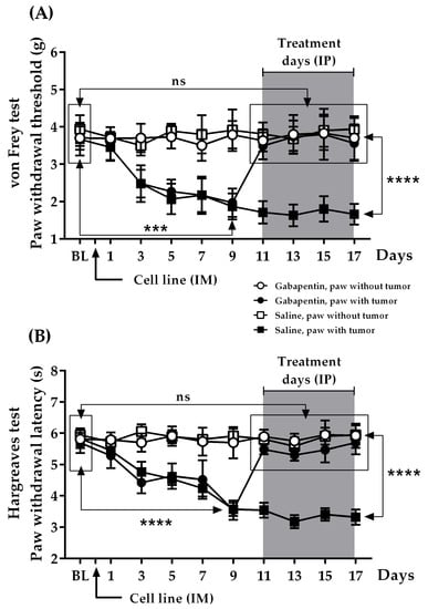 2.3. Effect of Therapeutic Administration of Gabapentin upon Nociceptive Changes Produced by Tumor Progression