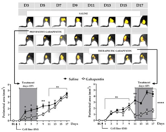Brito, B.E.; García, M.A.; De Gouveia, Y.M.; Bolaños, P.; Devis, S.; Bernal, G.; Tortorici-Brito, V.A.; Baute, L.; Díaz-Serrano, G.; Tortorici, V. Concomitant Antihyperalgesic and Antitumor Effects of Gabapentin in a Murine Cancer Pain Model. Int. J. Mol. Sci. 2021, 22, 9671. https://doi.org/10.3390/ijms22189671