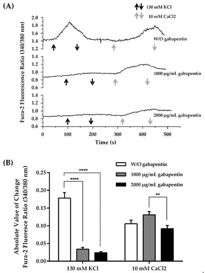 - Fink, K.; Dooley, D.J.; Meder, W.P.; Suman-Chauhan, N.; Duffy, S.; Clusmann, H.; Göthert, M. Inhibition of neuronal Ca2+ influx by gabapentin and pregabalin in the human neocortex. Neuropharmacology 2002, 42, 229–236. [Google Scholar] [CrossRef]