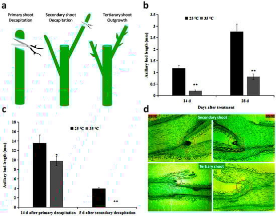 2.1. High Temperature Affects Axillary Bud Formation and Bud Outgrowth
