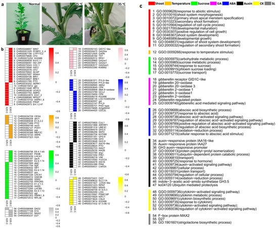 3.1. High Temperature Not Only Inhibited Axillary Bud Formation but Also Restricted Bud Outgrowth