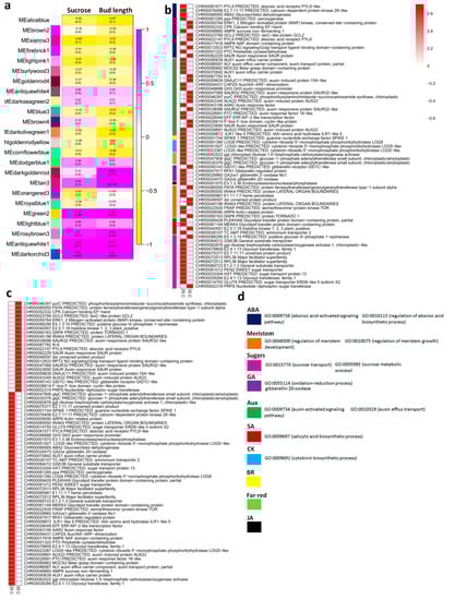 2.3. Weighted Gene Co-Expression Network Analysis (WGCNA) for Sucrose Homeostasis and Bud Growth Dynamics