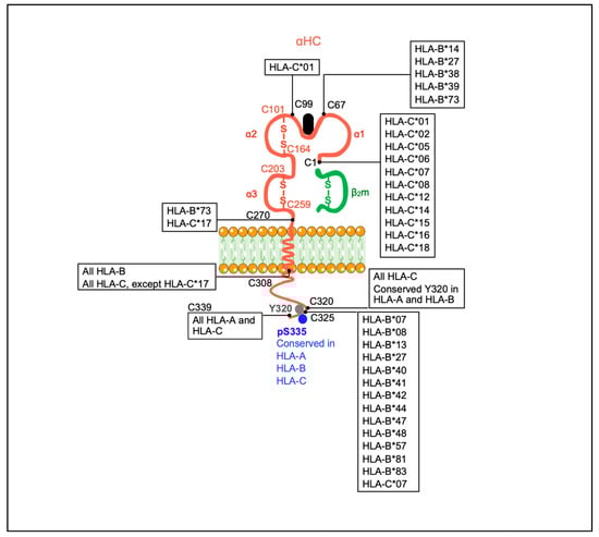 Altogether, these studies illustrate the complexity that surrounds the role of MHC-I molecules on CNS physiology and how a deviation on the baseline levels of expression of MHC-I molecules caused by inflammatory or anti-inflammatory conditions may impact brain function and cognition. In this respect, a recent study in the mouse CNS has unveiled cryptic motifs (PDZ sequences) in the cytoplasmic tail of MHC-I molecules [203]. These PDZ sequences regulate protein localization and the formation of scaffolds involved in cell–cell contact at immunological and neuronal synapses [204,205]. Notably, these PDZ motifs contain the conserved Tyr320 and Ser335 residues, targets of in vivo phosphorylation/de-phosphorylation, post-translational modifications that identify cell surface open and closed conformers [5,8,9,10,11,12,13,14,15].