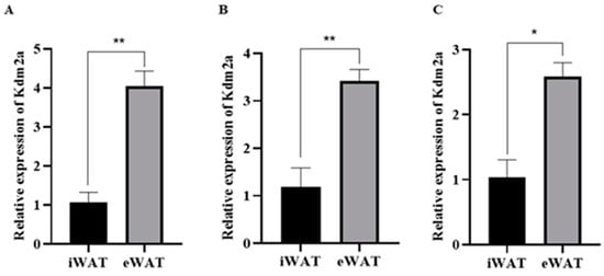 2.1. Expression Pattern of Histone Demethylase 2A (KDM2A) in White Adipose Tissues at Different Stages