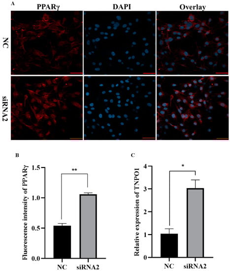 2.7. Knockdown of KDM2A Promotes Adipogenesis by Affecting Expression and Nuclear Translocation of PPARγ