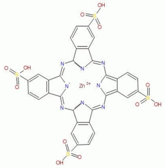 - Zn(II) Phthalocyanine Tetrasulfonic Acid|CAS 61586-86-5. Available online: https://www.scbt.com/p/zn-ii-phthalocyanine-tetrasulfonic-acid-61586-86-5;jsessionid=iZGa2UkreDgsGvuHQ6UEBzJOd-HuHecVcIV21uqfaK0VqjLX_xUz!1122603258 (accessed on 31 August 2021).