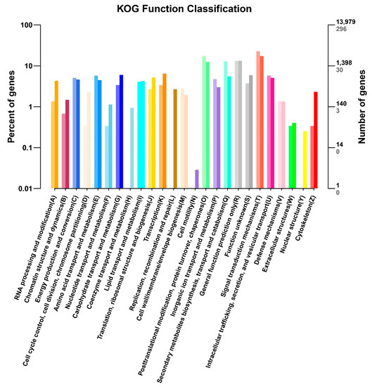2.5. Analysis of DEGs via KEGG and KOG Pathway