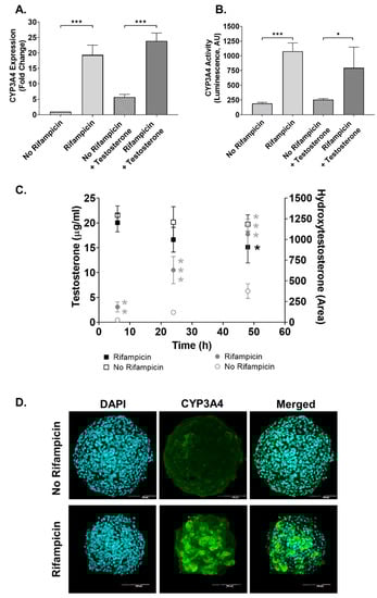 - Ueyama, T.; Tsuji, S.; Sugiyama, T.; Tada, M. Fluorometric Evaluation of CYP3A4 Expression Using Improved Transgenic HepaRG Cells Carrying a Dual-Colour Reporter for CYP3A4 and CYP3A7. Sci. Rep. 2017, 7, 2874. [Google Scholar] [CrossRef]