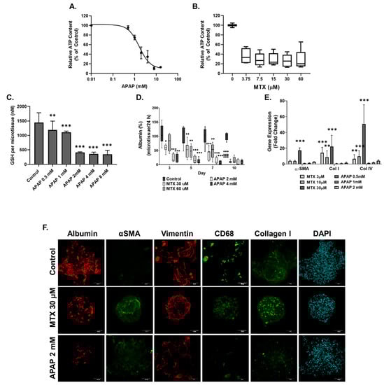 2.2. Methotrexate but Not Acetaminophen Induces Fibrosis in the MTs