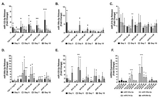 - Messner, C.J.; Premand, C.; Gaiser, C.; Kluser, T.; Kübler, E.; Suter-Dick, L. Exosomal MicroRNAs Release as a Sensitive Marker for Drug-Induced Liver Injury In Vitro. Appl. In Vitro Toxicol. 2020, 6, 77–89. [Google Scholar] [CrossRef]