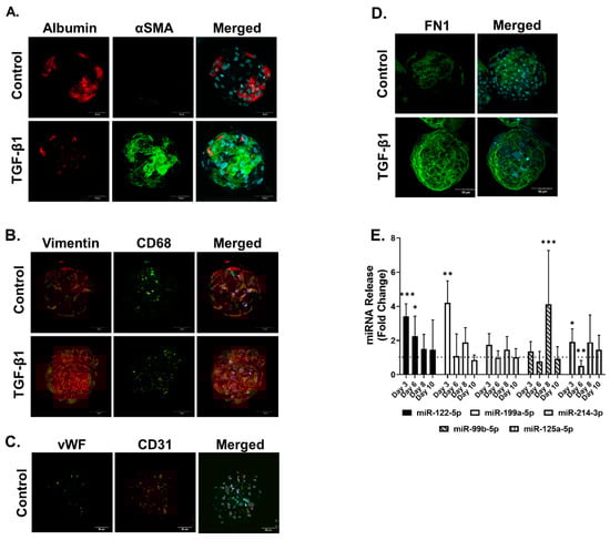 - Prestigiacomo, V.; Weston, A.; Messner, S.; Lampart, F.; Suter-Dick, L. Pro-Fibrotic Compounds Induce Stellate Cell Activation, ECM-Remodelling and Nrf2 Activation in a Human 3D-Multicellular Model of Liver Fibrosis. PLoS ONE 2017, 12, e0179995. [Google Scholar] [CrossRef] [PubMed]