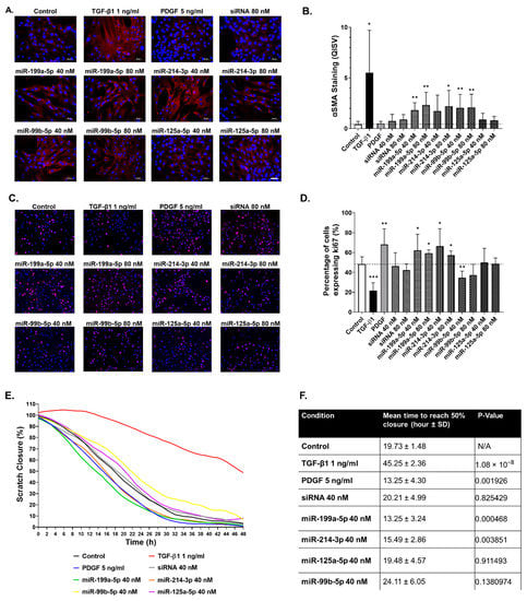 3.4. miR-199a-5p, miR-214-3p and miR-99b-5p Promote hTERT-HSC Activation