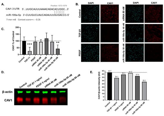 2.6. miR-199a-5p Targets Caveolin-1 in hTERT-HSCs