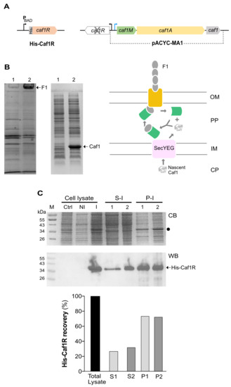 2.2. Caf1R Expression from the Native Gene, Cloned in pBADHis6 Plasmid