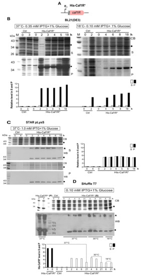 2.3. Caf1R Expression from the Native Gene, Cloned in pET28a+ Plasmid
