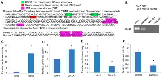 2.3. Hand1 Is a Direct Target Activated by the Canonical Bmp/Smad Signaling