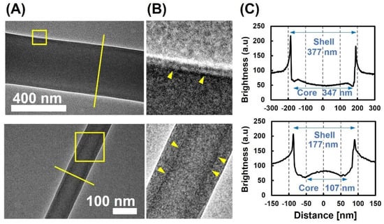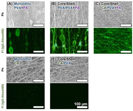 3.1. Morphological Observation of Protein-Immobilized Core-Shell NFs