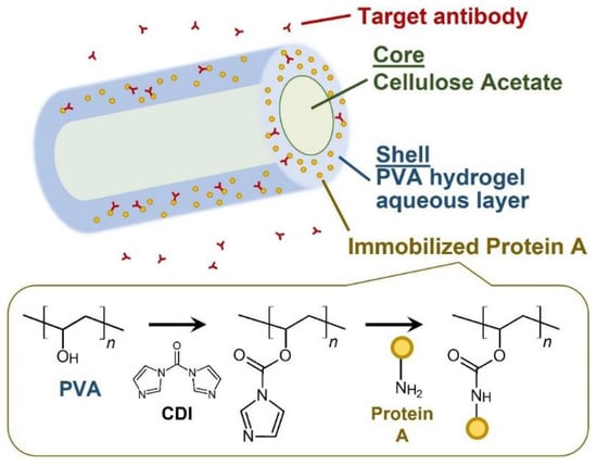 Naganuma, C.; Moriyama, K.; Suye, S.-i.; Fujita, S. One-Step Surface Immobilization of Protein A on Hydrogel Nanofibers by Core-Shell Electrospinning for Capturing Antibodies. Int. J. Mol. Sci. 2021, 22, 9857. https://doi.org/10.3390/ijms22189857