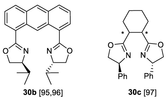 - Ma, L.; Jiao, P.; Zhang, Q.; Xu, J. Rigid backbone 1,8-anthracene-linked bis-oxazolines (AnBOXes): Design, synthesis, application and characteristics in catalytic asymmetric aziridination. Tetrahedron Assymetry 2005, 16, 3718–3734. [Google Scholar] [CrossRef]