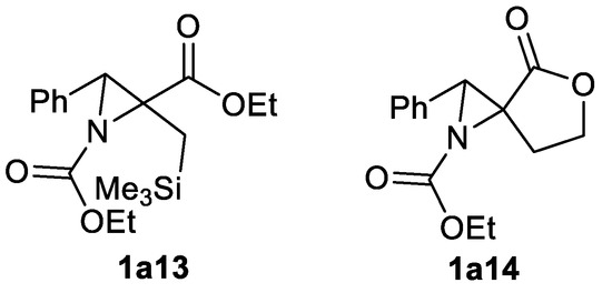 - Kumamoto, T.; Nagayama, S.; Hayashi, Y.; Kojima, H.; David, L.; Nakanishi, W.; Ishikawa, T. Epimerization of trans-3-Arylaziridine-2-carboxylates at the C3 Position. Heterocycles 2008, 76, 1155–1170. [Google Scholar] [CrossRef]