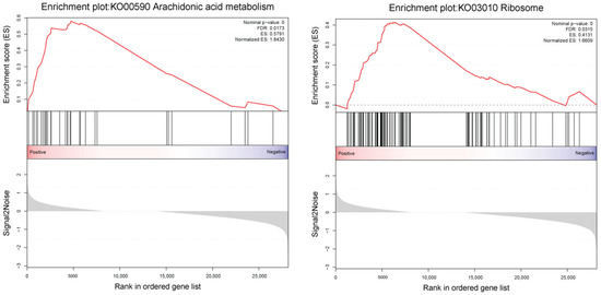 Enrichment plots from the gene set enrichment analysis of KEGG pathways in response to the 5-AzaC treatment of S. japonica (p-val. < 0.05). ES indicates the enrich score, and NES indicates the normalized enrich score.