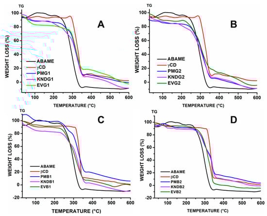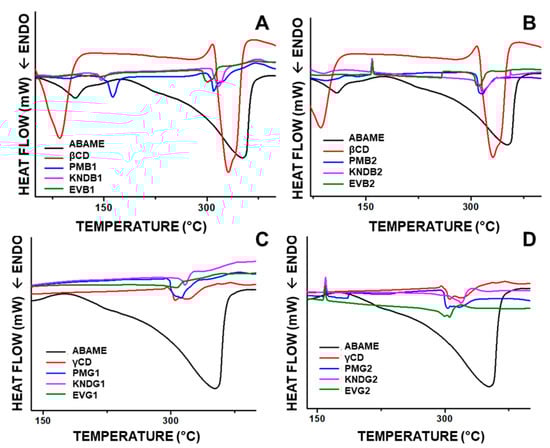 - Giordano, F.; Novak, C.; Moyano, J.R. Thermal analysis of cyclodextrins and their inclusion compounds. Thermochim. Acta 2001, 380, 123–151. [Google Scholar] [CrossRef]