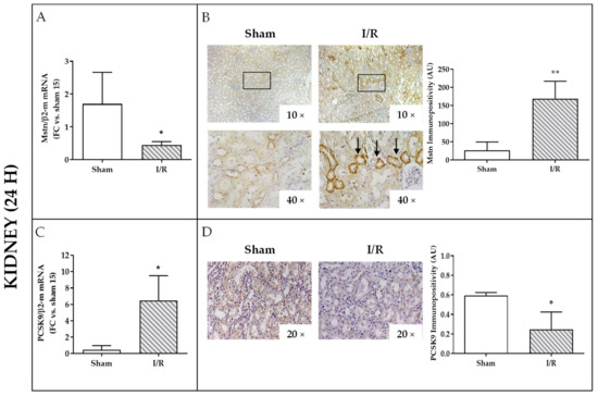 At this time point, no changes for monocyte chemoattractant protein-1 (MCP-1) mRNA have been observed in kidney homogenates from I/R and sham-operated rats (Supplementary Figure S1).