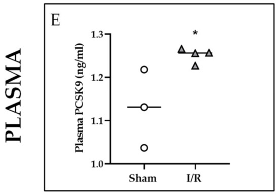 PCSK9, a pivotal regulator of low-density lipoprotein cholesterol (LDL-C), negatively affects infarct district and cardiac function [9]. Preclinical studies demonstrated that PCSK9 inhibition ameliorates infarct size and recovery after myocardial I/R injury [10]. PCSK9 is mainly expressed in the liver, but the kidney is also an important extra-hepatic source.