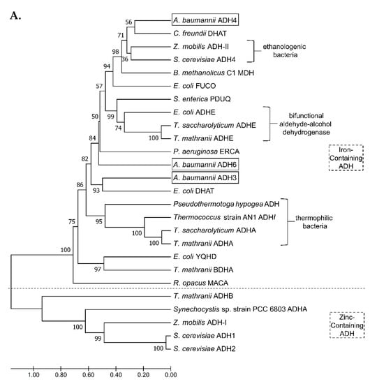 2.1. In Silico Identification of Putative ADH Genes in A. baumannii