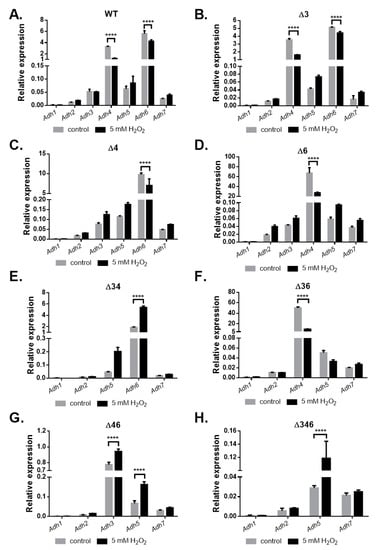 2.5. Adh3 and Adh6 Are Involved in Inorganic and Organic Oxidative Stress Responses