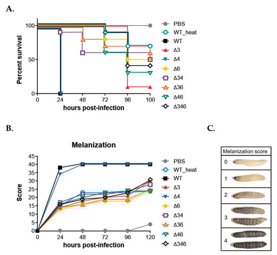 - Tsai, C.J.; Loh, J.M.; Proft, T. Galleria mellonella infection models for the study of bacterial diseases and for antimicrobial drug testing. Virulence 2016, 7, 214–229. [Google Scholar] [CrossRef]