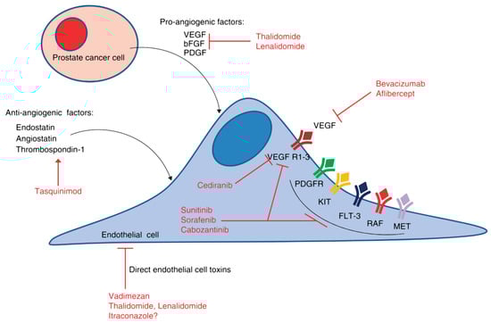 - Aragon-Ching, J.B.; Madan, R.A.; Dahut, W.L. Angiogenesis Inhibition in Prostate Cancer: Current Uses and Future Promises. J. Oncol. 2010, 2010, 361836. [Google Scholar] [CrossRef] [PubMed]
