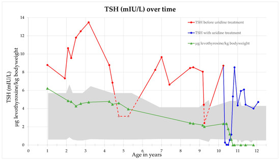 Chicago/Turabian StyleJasper, Luisa, Pasquale Scarcia, Stephan Rust, Janine Reunert, Ferdinando Palmieri, and Thorsten Marquardt. 2021. "Uridine Treatment of the First Known Case of SLC25A36 Deficiency" International Journal of Molecular Sciences 22, no. 18: 9929. https://doi.org/10.3390/ijms22189929