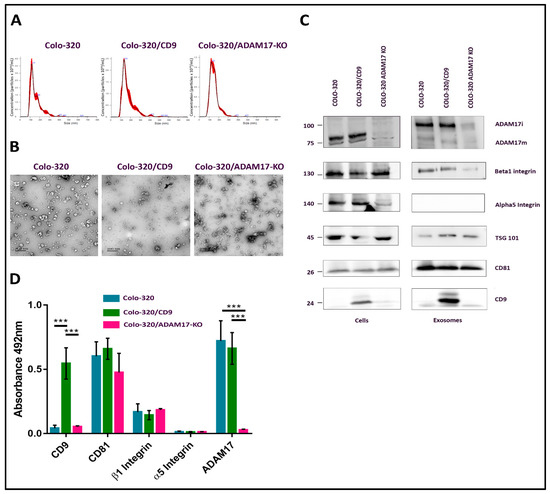 2.1. Characterization of EVs Derived from Colo-320, Colo-320/CD9 and Colo-320/ADAM17-KO Human Adenocarcinoma Cells