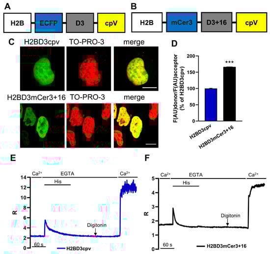 Galla, L.; Vajente, N.; Pendin, D.; Pizzo, P.; Pozzan, T.; Greotti, E. Generation and Characterization of a New FRET-Based Ca2+ Sensor Targeted to the Nucleus. Int. J. Mol. Sci. 2021, 22, 9945. https://doi.org/10.3390/ijms22189945