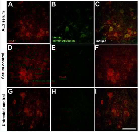 2.1. Presence of the Human Immunoglobulins in the Spinal Motor Neurons after Passive Transfer of the Amyotrophic Lateral Sclerosis Sera
