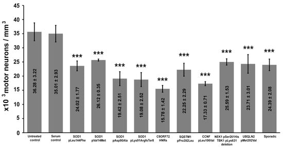 - Wolfgram, F.; Myers, L. Amyotrophic Lateral Sclerosis: Effect of Serum on Anterior Horn Cells in Tissue Culture. Science 1973, 179, 579–580. [Google Scholar] [CrossRef]