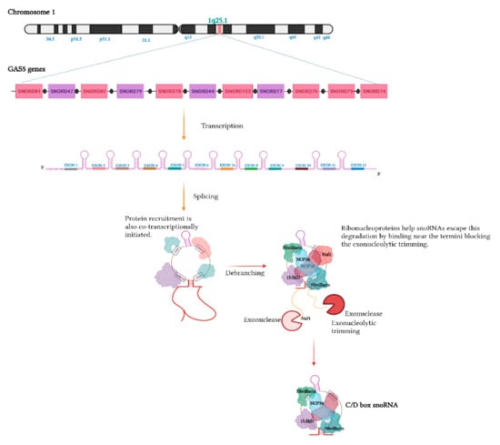 - Scott, M.S.; Ono, M.; Yamada, K.; Endo, A.; Barton, G.J.; Lamond, A.I. Human box C/D snoRNA processing conservation across multiple cell types. Nucleic Acids Res. 2012, 40, 3676–3688. [Google Scholar] [CrossRef] [Green Version]