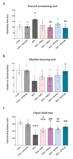 2.1. Improvement Effect of MYP Treatment on Depression-Like Behaviors