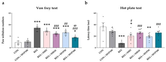 2.2. Alteration of Mechanical and Thermal Hypersensitivity by MYP Treatment