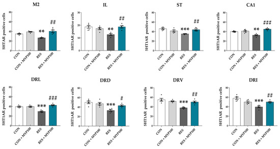 2.5. Regulation of 5-HT1A/B Receptors Expression by MYP Treatment in the Brain
