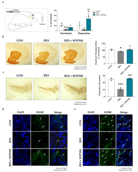 2.9. Effect of MYP Treatment on Dopamine and 5-HT Production in ST