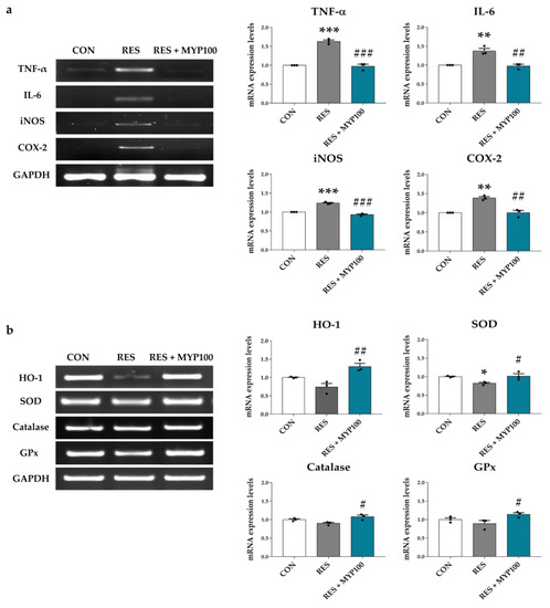 2.10. Anti-Oxidative and Anti-Inflammation Effects of MYP in Internal Organs