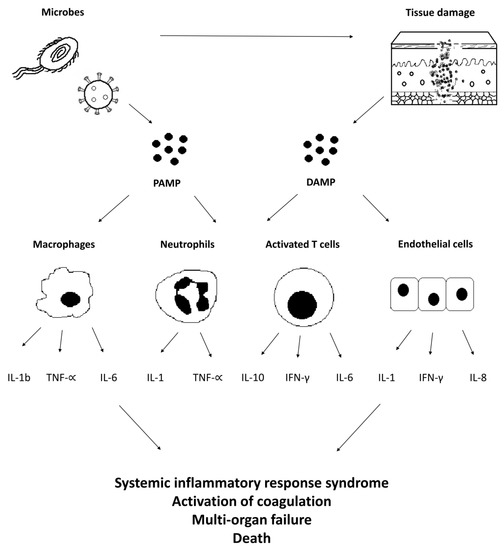 - Chousterman, B.G.; Swirski, F.; Weber, G.F. Cytokine storm and sepsis disease pathogenesis. Semin. Immunopathol. 2017, 39, 517–528. [Google Scholar] [CrossRef] [PubMed]