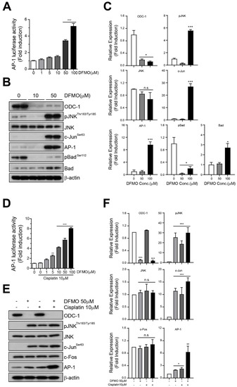 2.4. DFMO Induces Phosphorylation of JNK and Activates the AP-1 Signaling Pathway