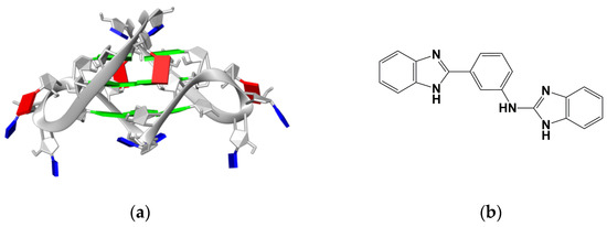 Telomeres are specialized nucleoprotein structures that protect chromosomal DNA from progressive degradation and ensure the integrity of linear chromosomes by preventing the natural ends from being recognized as DNA damage [22,23]. Human telomeres terminate with a 3′ single-stranded DNA overhang, which is composed of tandem repeats of the short guanine-rich sequence d(TTAGGG) synthesized by telomerase, a telomere-specific reverse transcriptase. In normal human cells, telomeres progressively shorten, leading to growth arrest upon telomere uncapping known as replicative ageing. Conversely, telomerase is overactive in numerous cancer subtypes, contributing to the ability of these cells to indefinitely proliferate due to the lack of chromosomal shortening [24]. Mounting evidence shows that G4s formation and stabilization at telomeres inhibits telomerase activity and induces DNA damage response, leading to chromosomal shortening and cell death [25,26]. Therefore, designing small molecules able to bind and stabilize telomeric G4s represents a potential avenue for developing novel selective anticancer agents [27,28,29].
